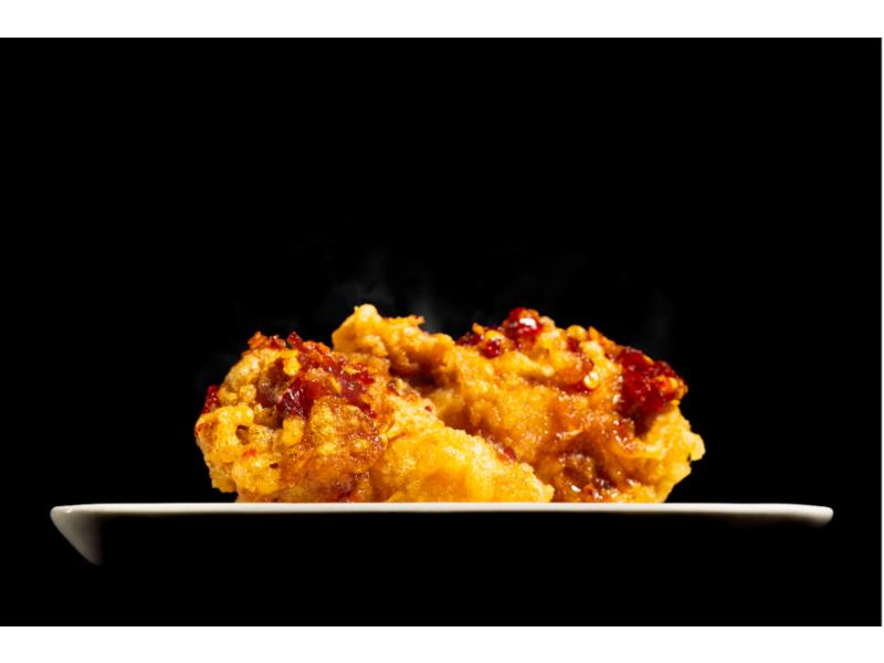 Fritert vingeklubber glasert med Red Kanjang Saus. Serveres med kålsalat og hvitløksdressing. Inneholder Hvete, Soya. Dressing inneholder Egg, Melk, Sennep, Sesamfrø.